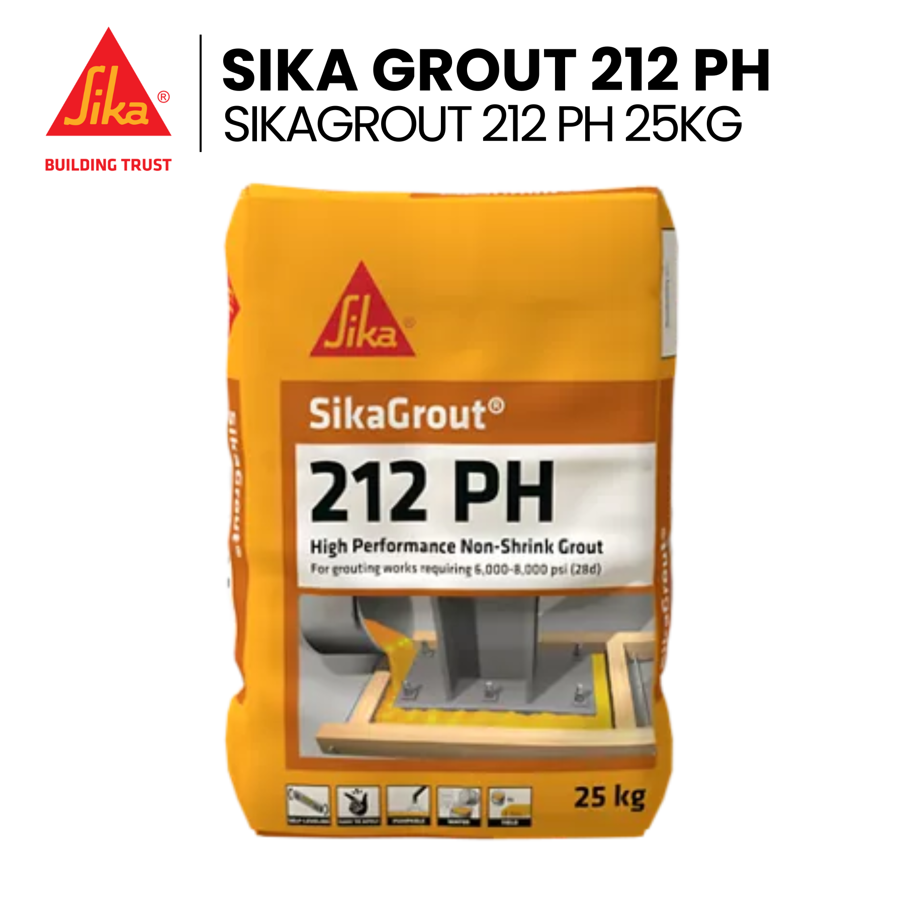 Sika Grout 212 25KG High Strength, Shrinkage Compensated, Cementitious SikaGrout Construction
